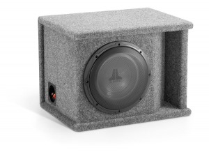One 10W1v2-4, slot-ported enclosure, 4 Ω final impedance, dark gray carpet finish.